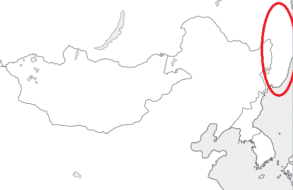 それぞれ、地理情報を掲載しておきます。まず、したの赤丸で囲まれた部分が沿海州です。現在はロシア領となっています。「海沿いの州」なので、ある意味わかりやすいネーミングです。ちなみに、この沿海州の西の境にはウスリー川(ウスリー江)が流れていて、現在の中国とロシアの国境となっています。1969年に発生した中ソ国境紛争の舞台となったダマンスキー島(珍宝島)はこのウスリー江の中州です。