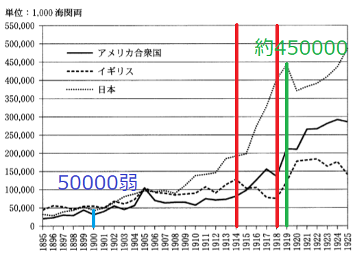 また、義和団事件が起こった時の日本との貿易額は50,000弱だが、五・四運動当時の貿易額は約450,000と9倍近くにのぼるため、bの文章は誤り。